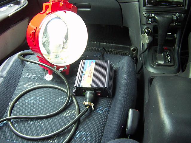 家庭用電球+変換器に接続することにより、車のシガーソケットにて使用可能です。